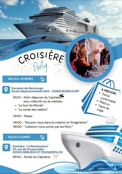 L’organisation réalisée par une équipe interne à la structure, sur le thème « La Croisière s’amuse », a répondu à toutes les attentes des croisiéristes : du rire, des jeux (collectifs et individuels), du chant, de la danse… Le paquebot était bien mouvementé sur une mer plutôt calme !