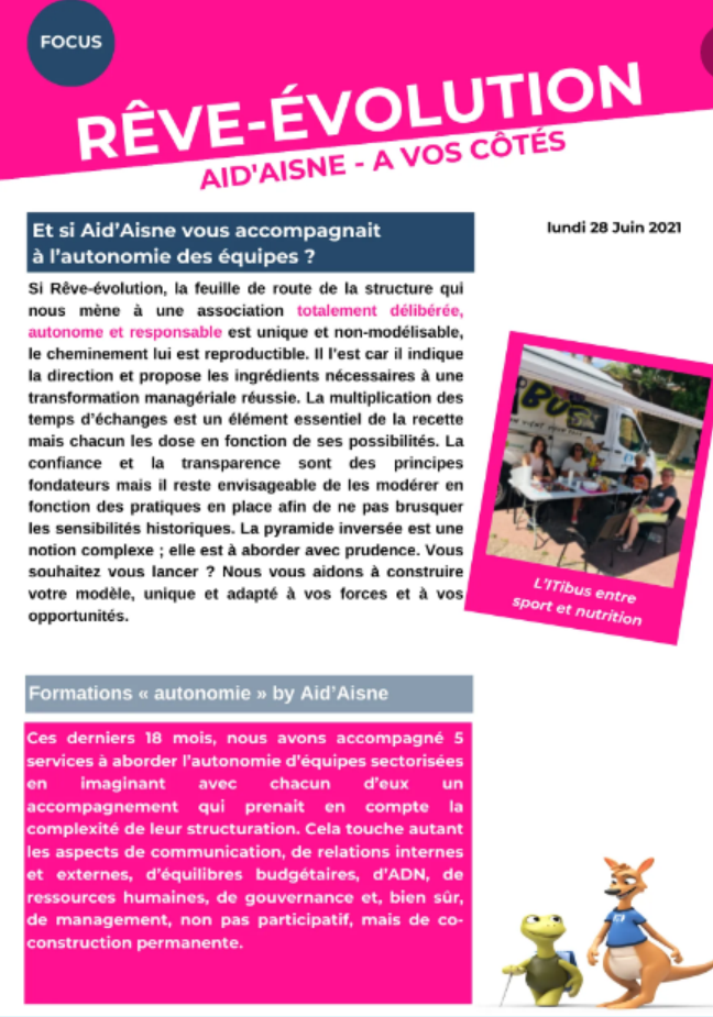 Le focus de cette semaine fait le point sur les formations proposées par Aid’Aisne pour accompagner d’autres structures à nous rejoindre à partir des meilleurs ingrédients de Rêve-évolution… Un peu de promotion externe…