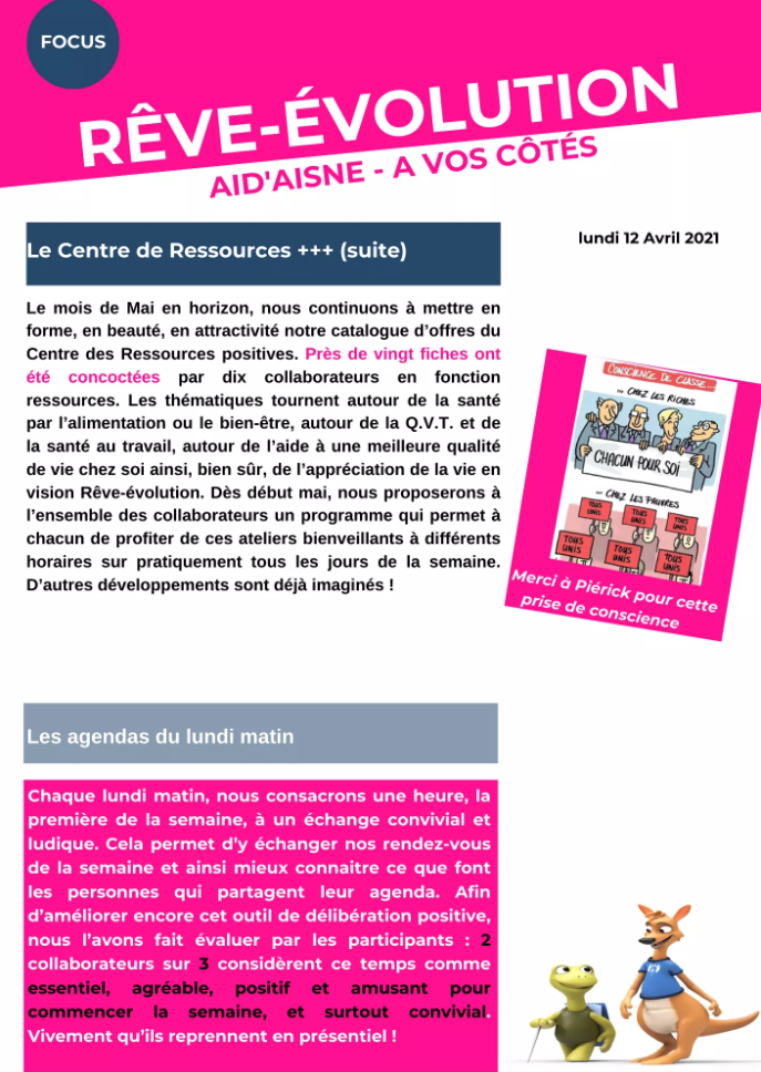 Le Focus Rêve-évolution évoque le Centre de Ressources Positives (CR+++) et déjà 20 projets de #QVTP proposés sur Mai…
