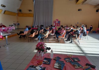 Entre les mini-ateliers, les exposants (Diamant Rose, GMF, Assurance maladie, Ageo prévoyance, Présoa, Ergothérapeute, Sophrologue, Référentes Nutrition et Activités Sportives) la cadence était dense… Le Dr Theret de l’Hôpital de Saint-Quentin, Conférencier à cette occasion, a su rassembler les participants afin de parler du cancer et de répondre aux interrogations de chacun.