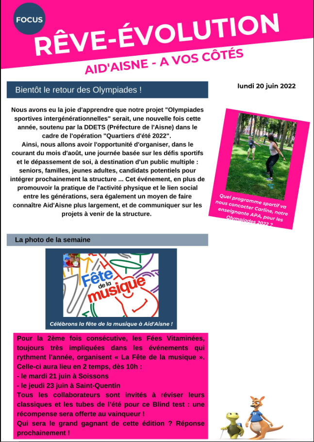 Cette semaine dans le FOCUS… on y évoque le retour des Olympiades à Saint-Quentin dans le cadre des Quartiers d’été, projet soutenu par la DDETS… ainsi que la fête de la musique à Aid’Aisne… avec un programme alléchant, attendu par les collaborateurs […]