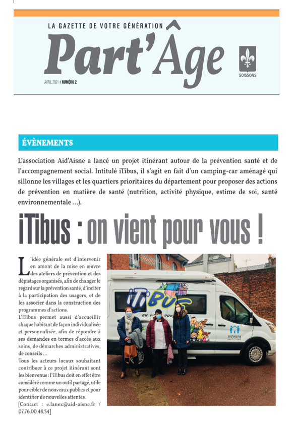 Part’Age, le magazine de la gazette des seniors soissonnais a consacré un article au iTibus de Aid’Aisne dans sa rubrique « évènements ».