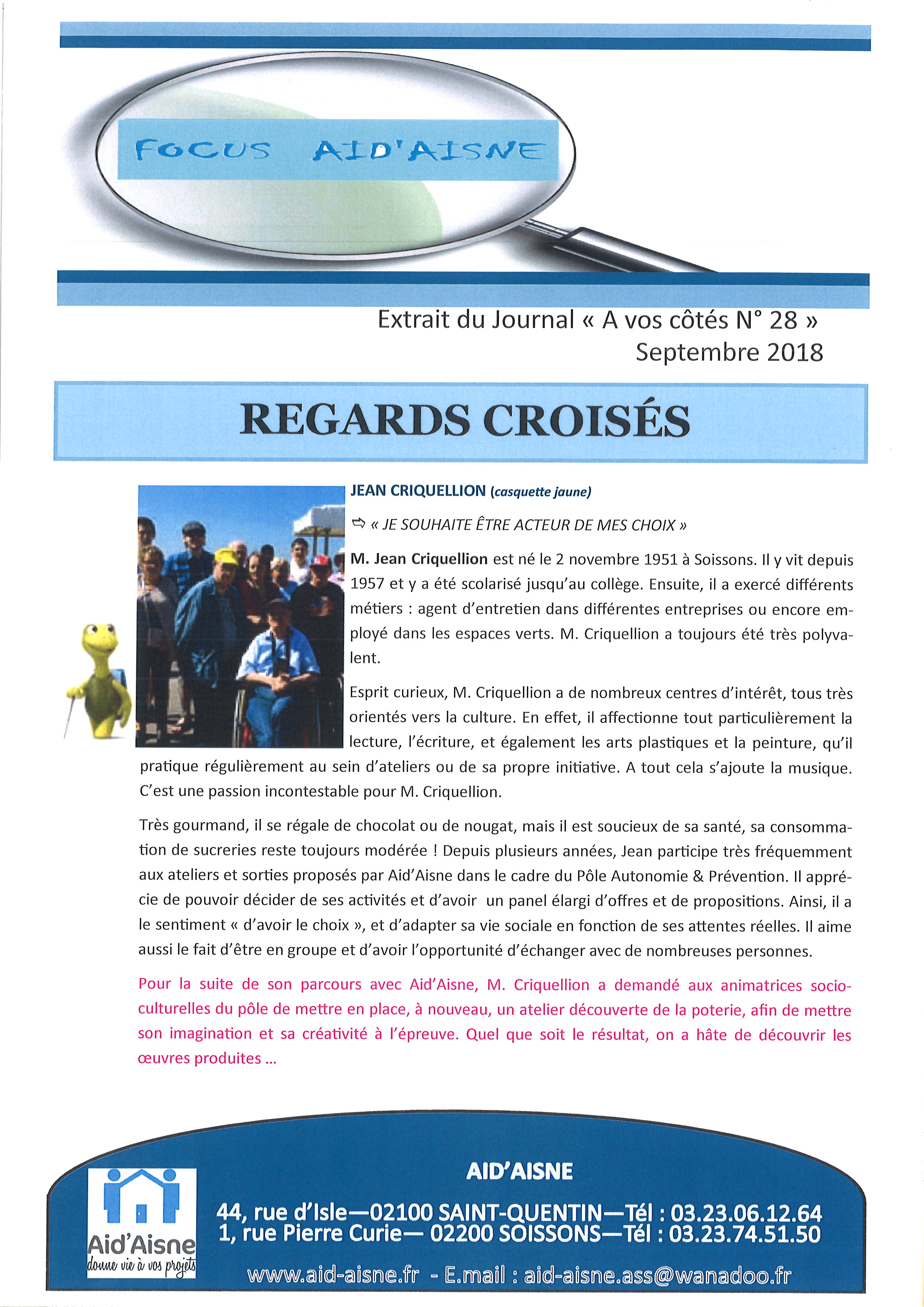 Jetons un œil sur le parcours de Madame DOMONT, salariée de Aid’Aisne et notre bénéficiaire, Monsieur CRIQUELLION…