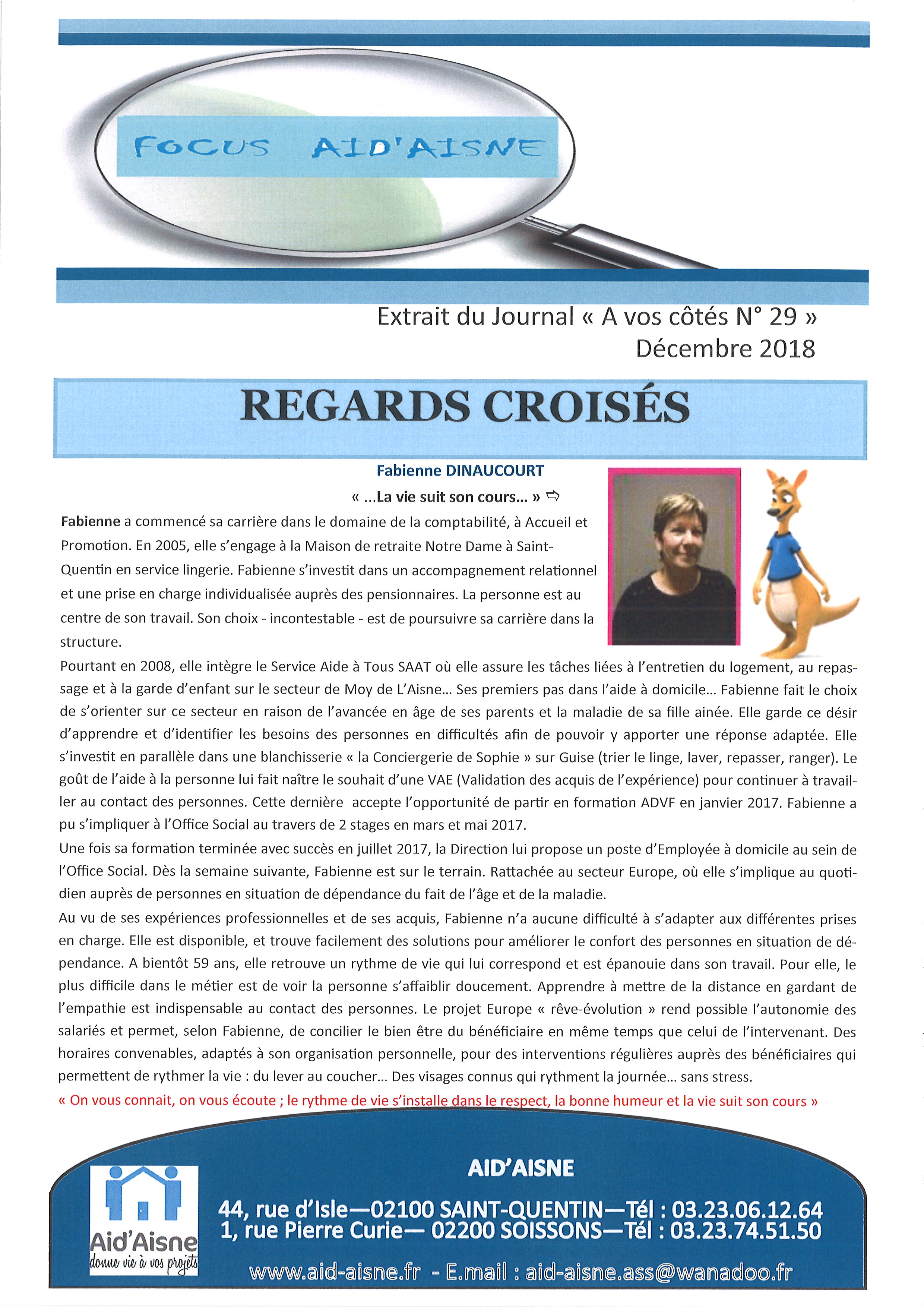Jetons un œil sur le parcours original de Madame HELIN, bénéficiaire de Aid’Aisne et de l’investissement incontestable de notre salariée, Mme DINAUCOURT…