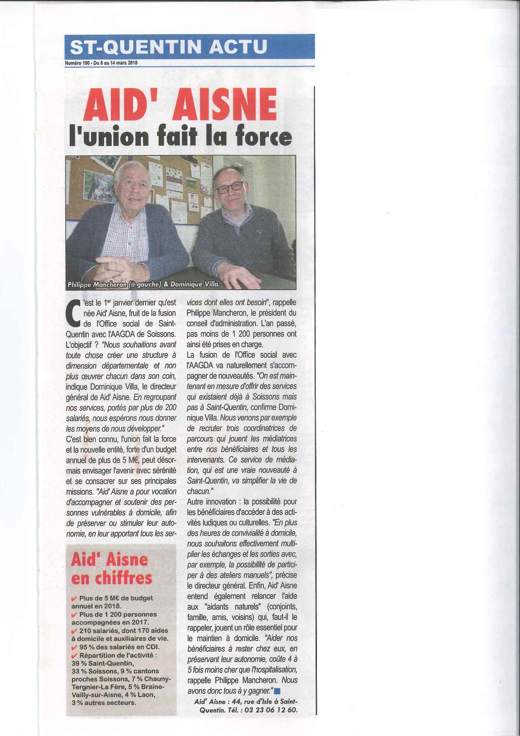 C’est bien connu, l’union fait la force ! En regroupant l’Office Social de Saint-Quentin et l’AAGDA de Soissons (= Aid’Aisne), les dirigeants espèrent une structure à dimension départementale […]